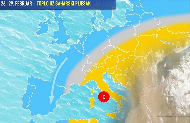 Danas, u četvrtak, u našu zemlju će stići još više saharskog pijeska pa će “zamućenje” biti još više izraženo, a porast će i zagađenje zraka.