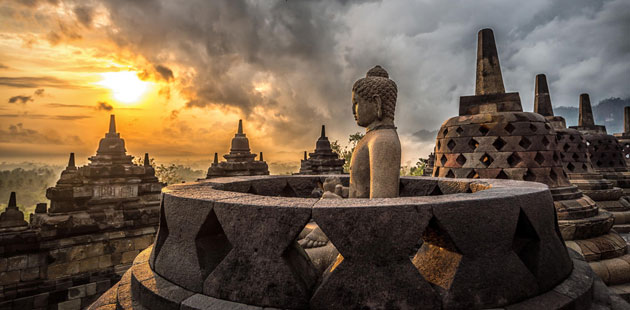 Smješten na indonezijskom otoku Java, 40 km sjeverozapadno od Yogyakarta, Borobudur je najveći i najpoznatiji budistički hram na svijetu. Za njegovu izgradnju bila je potrebna vojska radnika, 60.000 kubičnih metara vulkanske stijene, odnosno cca 2.000.000 kamenih blokova. Na kvadratnoj osnovici čije su strane duge 123 m uzdiže se ukupno devet spratova.